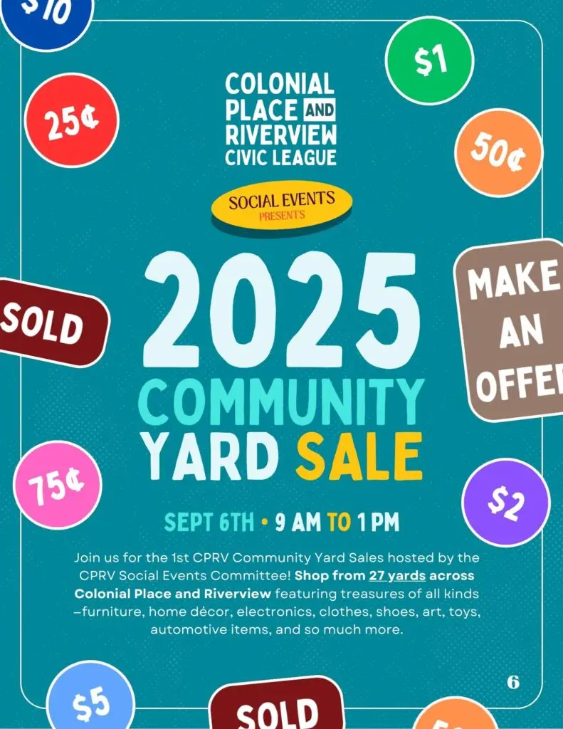 Join us for the 1st CPRV Community Yard Sale hosted by the CPRV Social Events Committee!