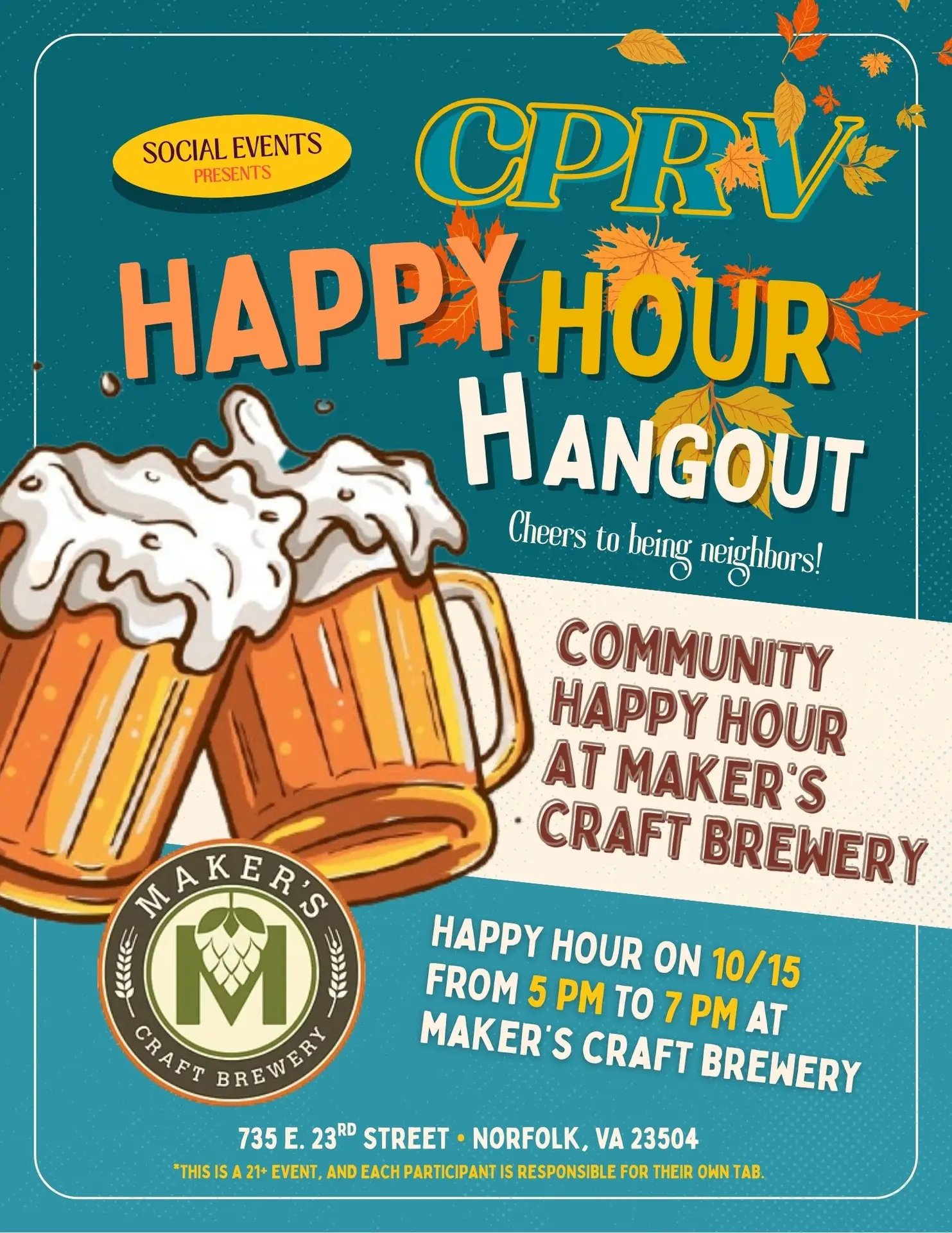 This month, we gather at Maker’s Craft Brewery (5104 Colley Ave, Norfolk) on Wednesday, October 15th, from 5:00 pm to 7:00 pm. See you there!